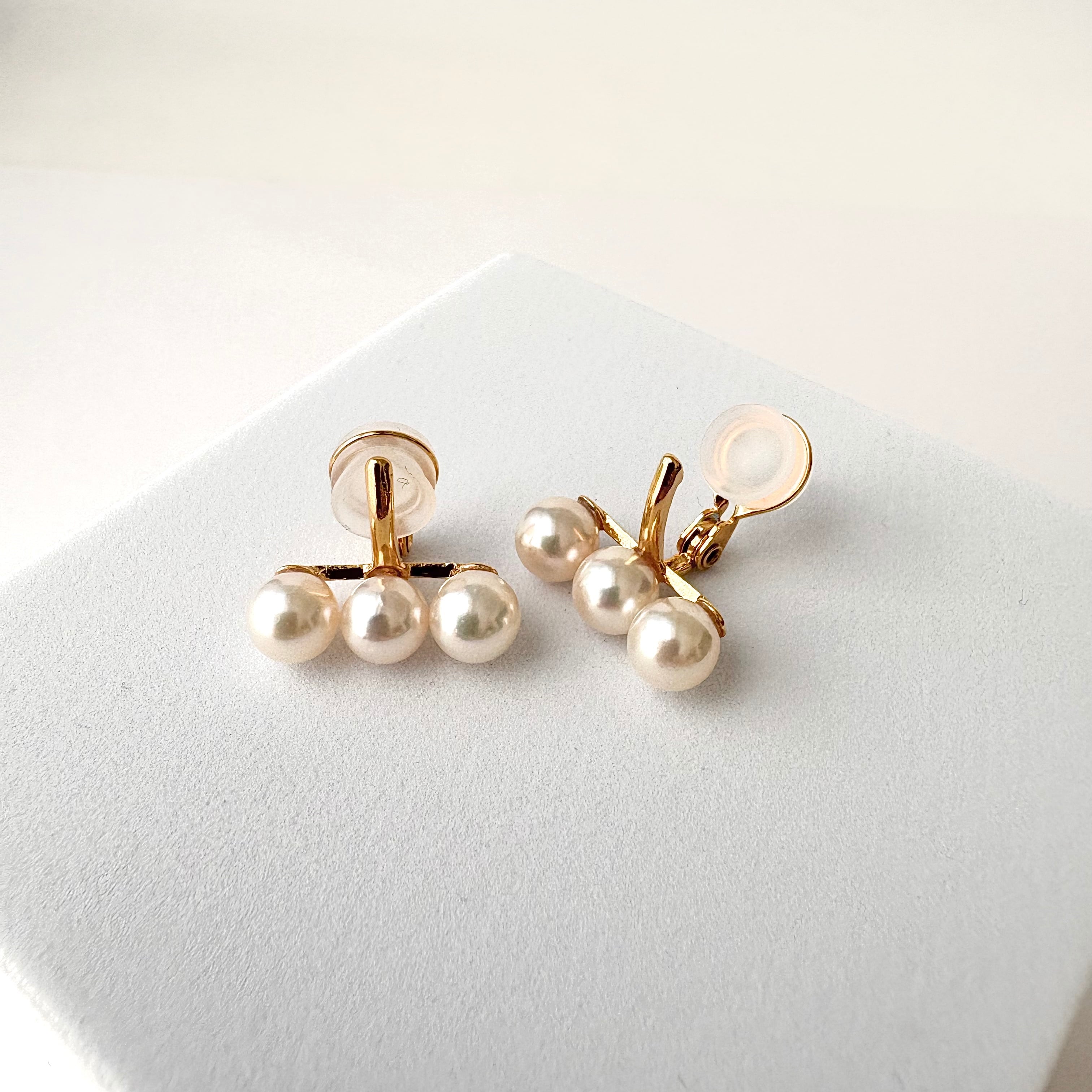 SV イヤリング 2カラー 3粒ライン あこや真珠