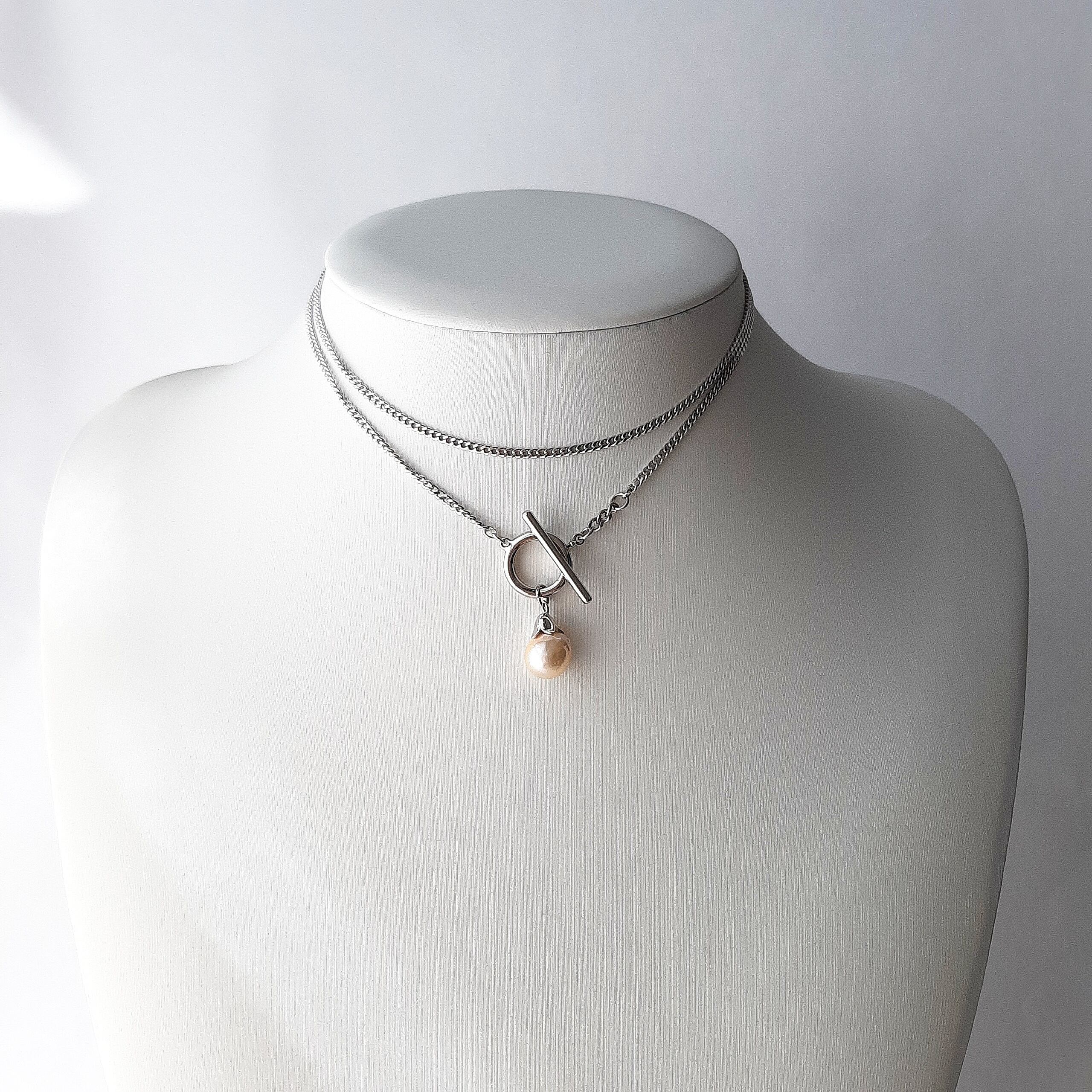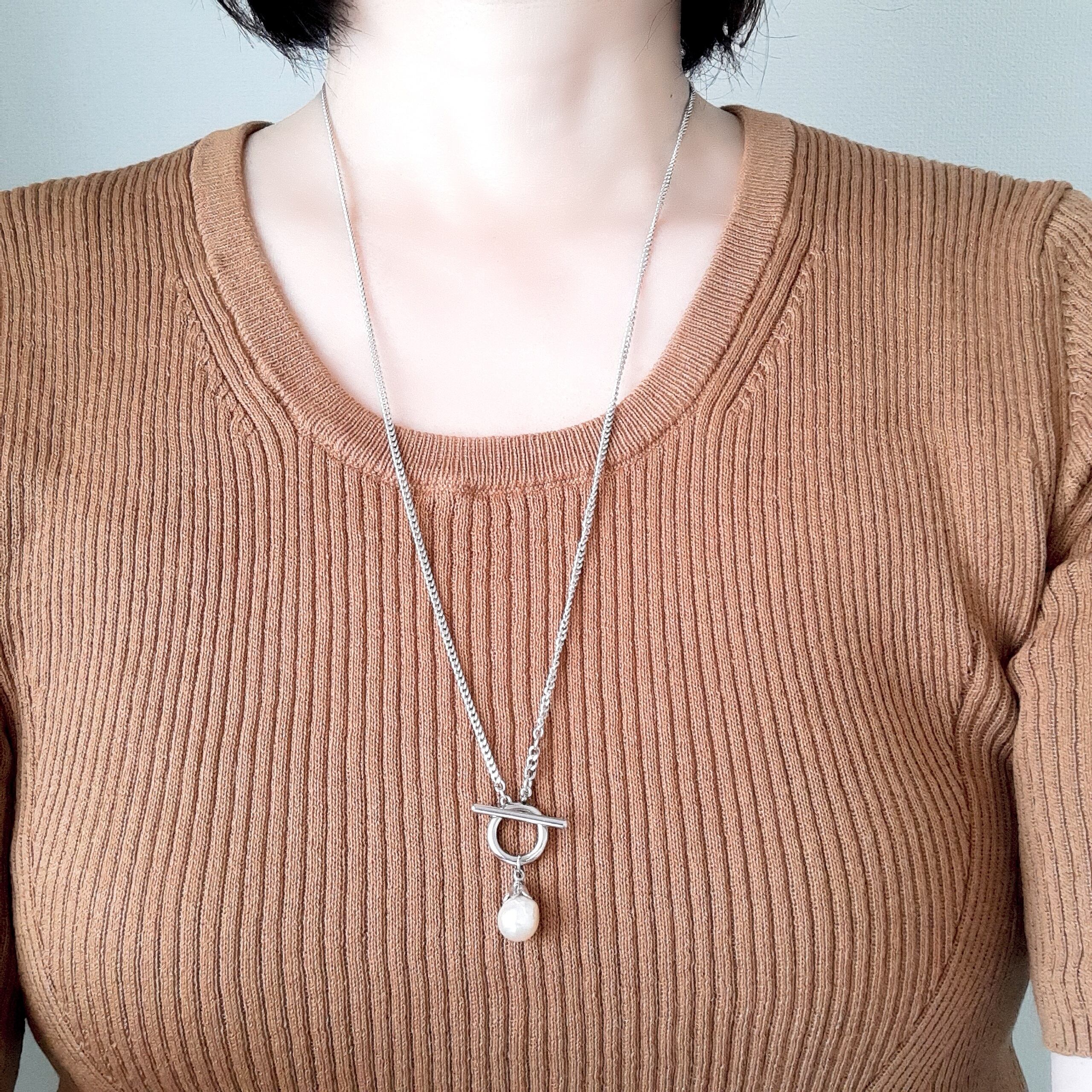 上品で華やかなバロックパール ロングネックレス。個性的で美しいフォルムから、バロックパールはアクセサリーの世界でとても人気があります。一粒のパールが持つ輝きと深みを、あなたのコーディネートに加えませんか。マンテルと長めのチェーンで、2連やY字にしたり、スタイリングによって表情を変え、おしゃれ感を演出します。