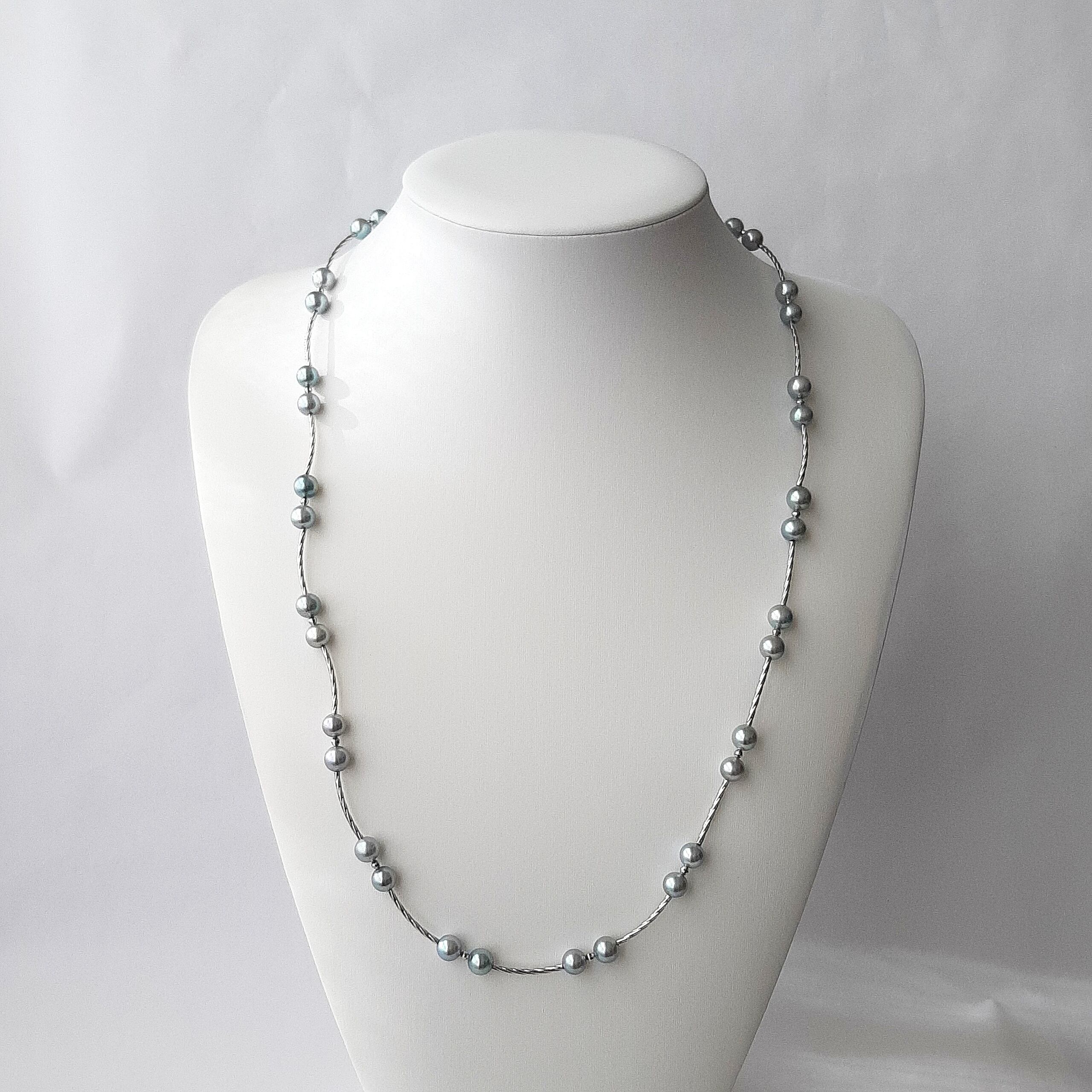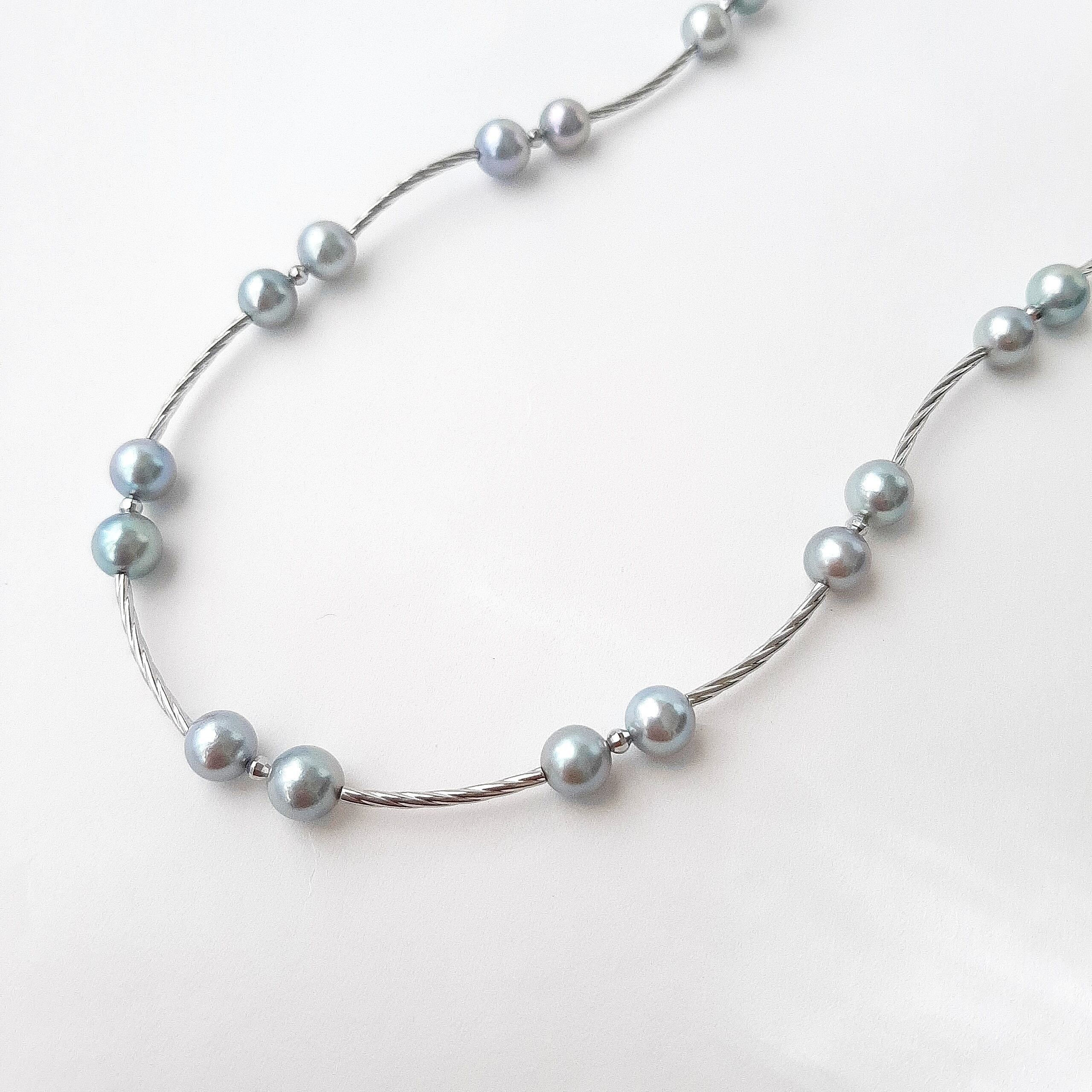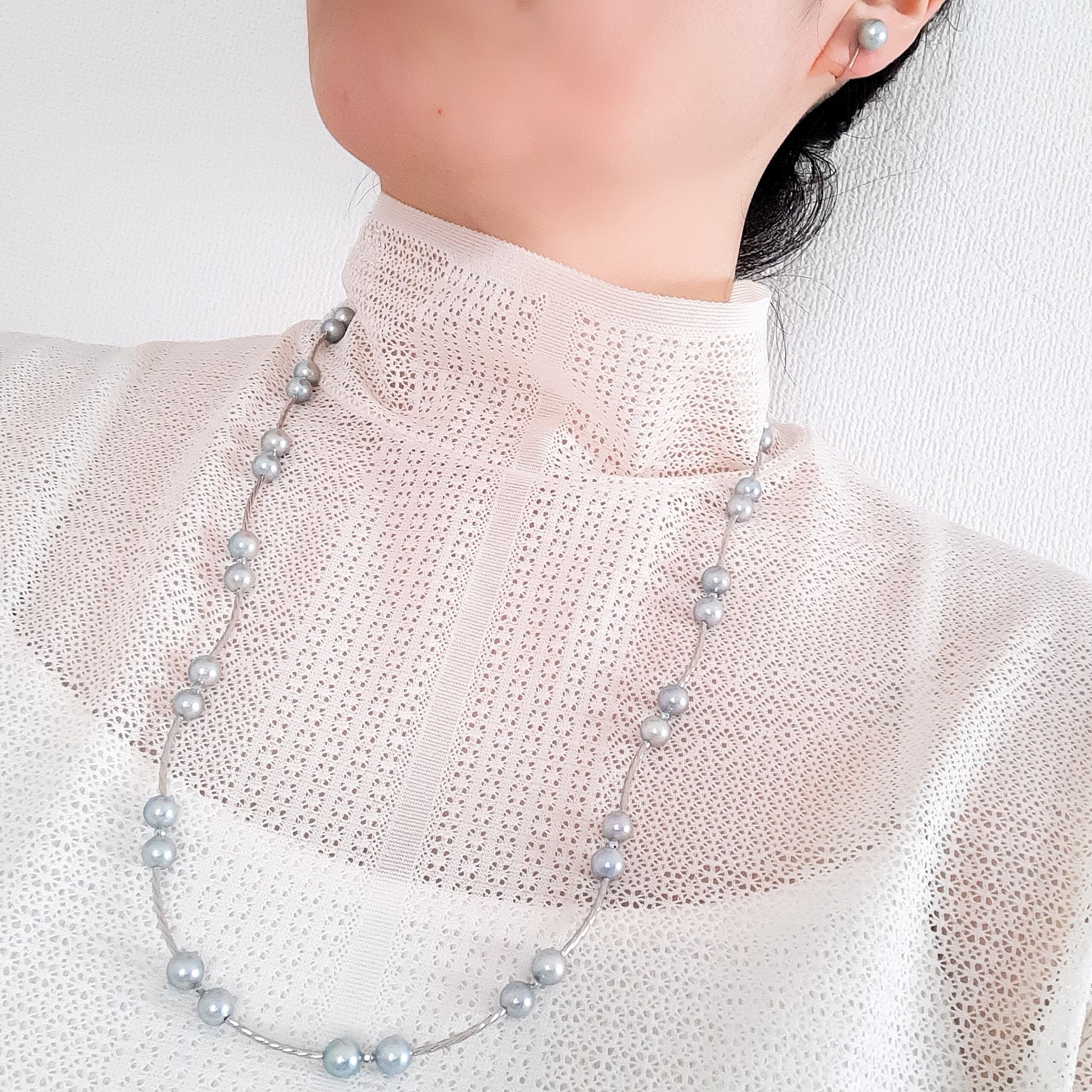 ブルー系グレーパールの洗練された輝きが魅力のロングネックレス。優雅さをまとうゆるやかな曲線美が特徴で、他にはないデザインが魅力の一品です。身に着けることで、大人の女性らしさを演出し、周囲の視線を引き寄せること間違いなしです。デイリーコーディネートやフォーマルなシーンにも合わせやすく、さまざまなスタイルにアクセントを加えることができます。アジャスターで長さ調節可能です。
