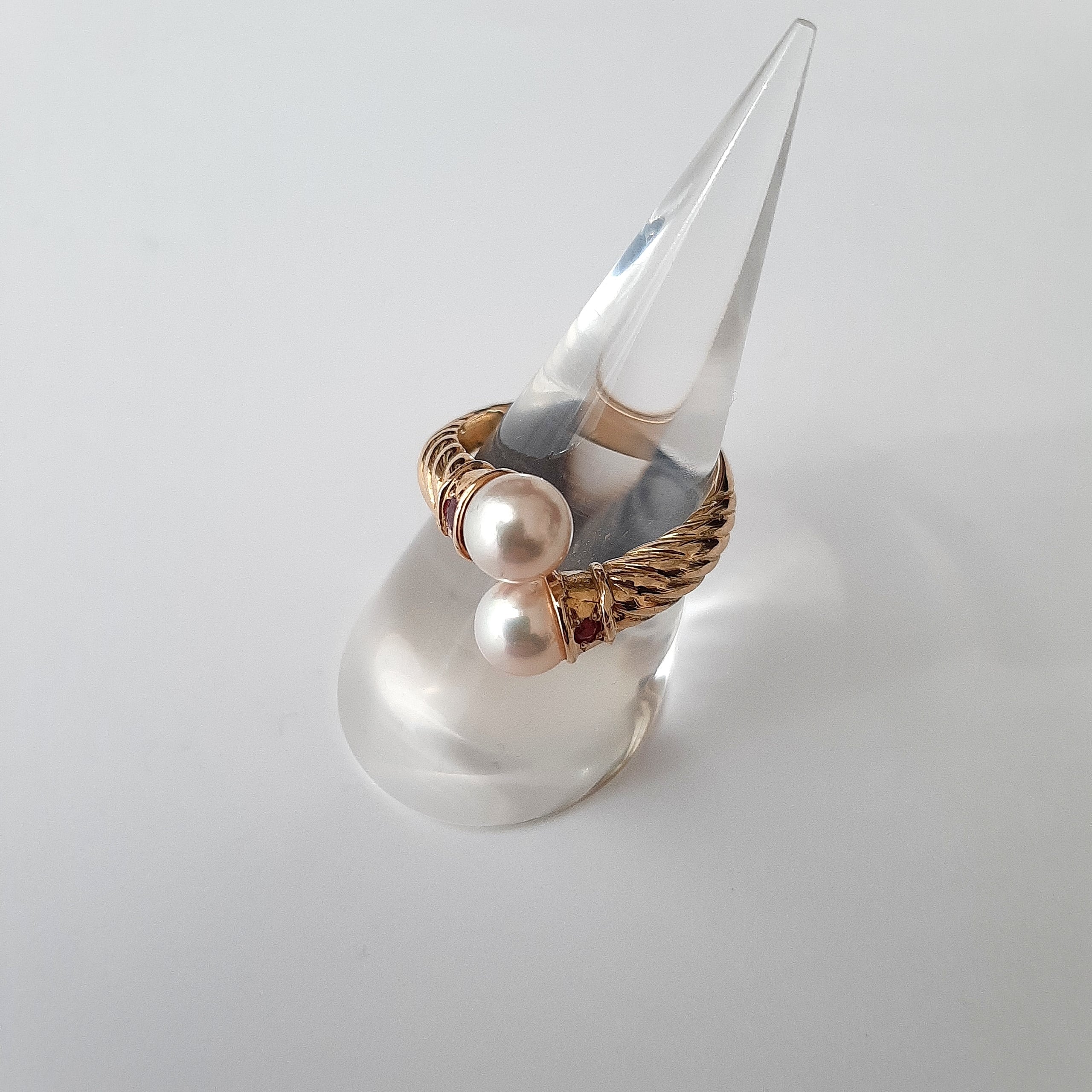 K18 パールリング ルビー付 メンズ あこや真珠 指輪