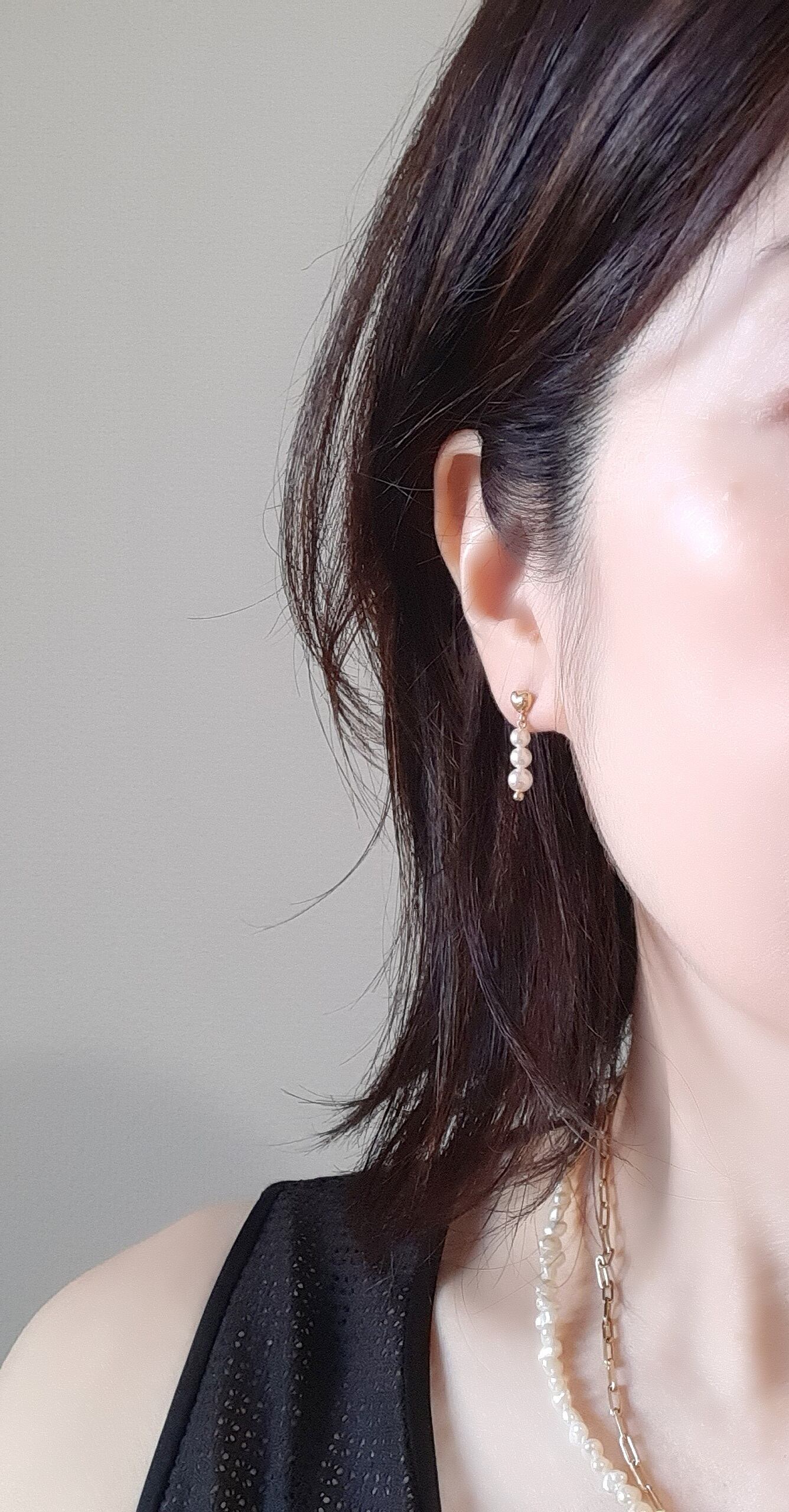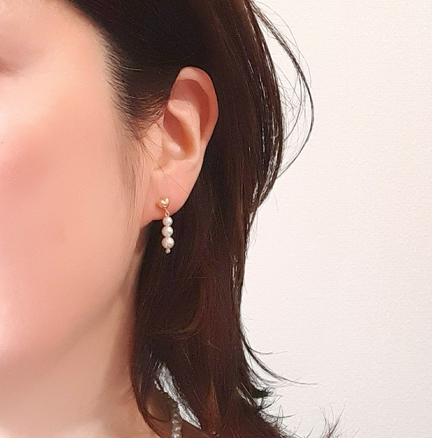 K18のハート型ピアスに、華やかなあこや真珠のベビーパールをあしらった贅沢な一品。上品な輝きと可愛らしいデザインで、女性らしさを引き立てるアクセサリーです。ころんとしたハート型の留め具の耳元で揺れる優美な大中小3粒のベビーパールが、装いに華を添えます。どんなスタイルにも合わせやすく、日常使いから特別な日の装いまで、幅広く活躍してくれます。