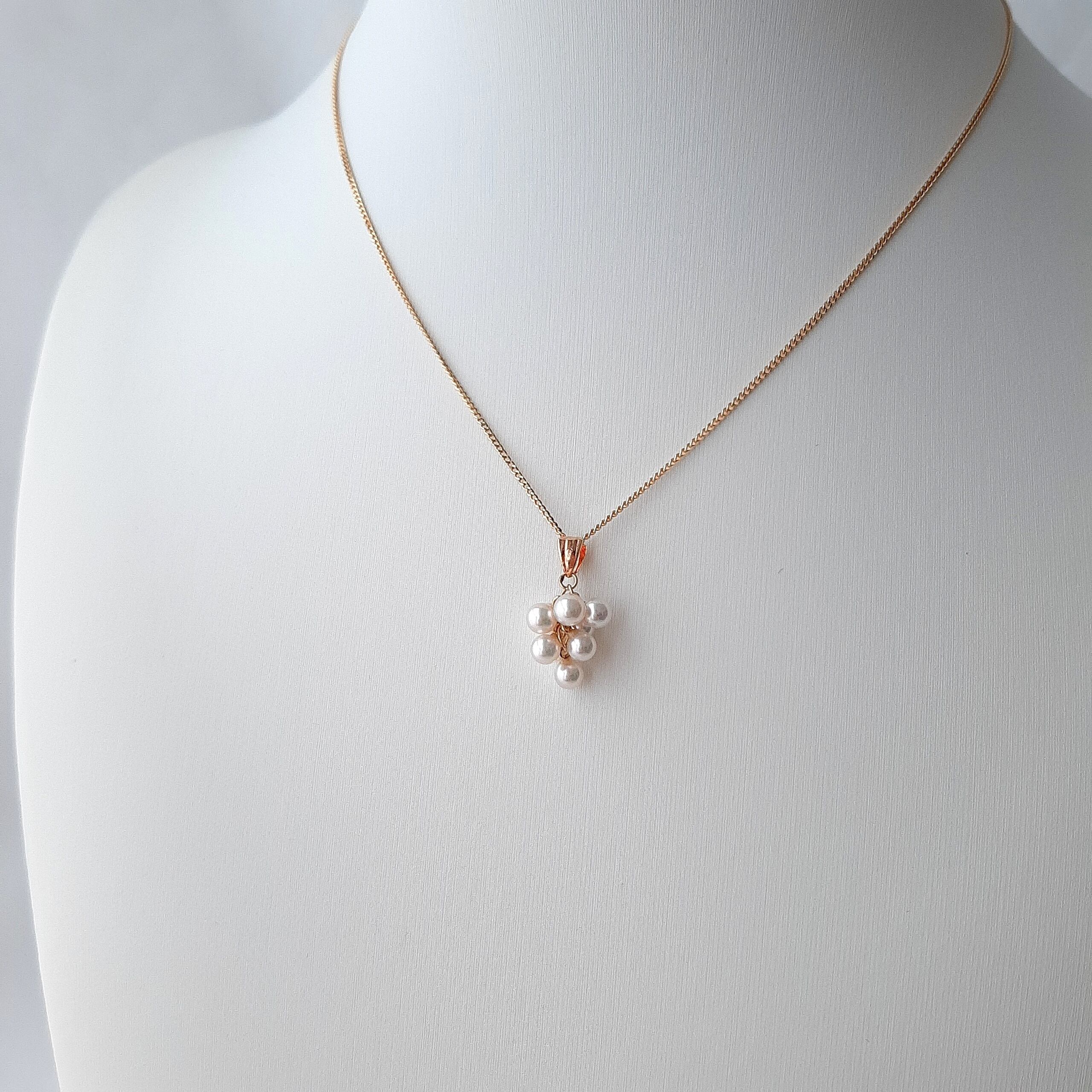 小粒で上品なベビーパールを贅沢にあしらい、可憐なぶどうモチーフに仕立てました。K18チェーンの優雅な輝きと相まって、女性らしい柔らかな印象を引き立てます。